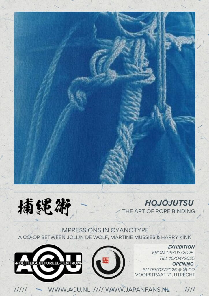 Through the Japan Fans Foundation, rope artist Harry Kink, visual artist Jolijn de Wolf and researcher Martine Mussies got to know each other. Together, they captured the delicate and powerful knots of Hojōjutsu through the photographic technique of cyanotype. A fusion of functionality, aesthetics and craftsmanship.
