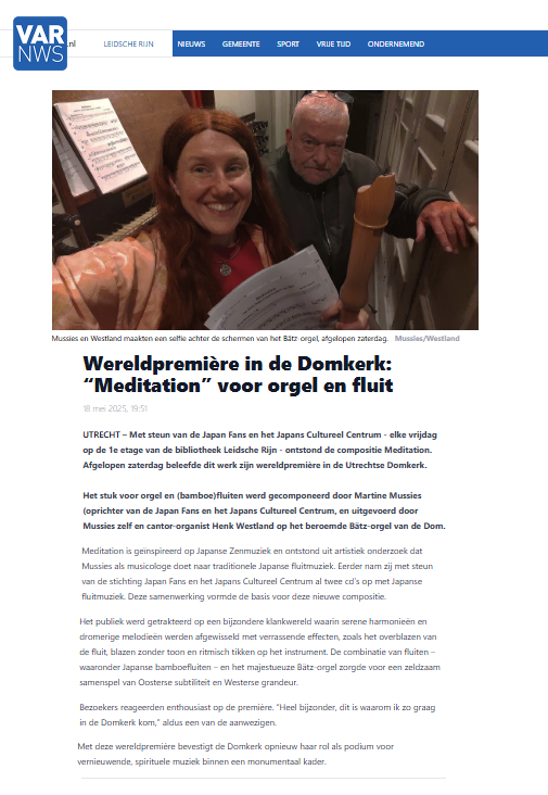 We perform in many different settings: from intimate concerts in care homes and hospitals to large venues such as Utrecht’s Domkerk, the Neude Library, and Bibliotheek Leidsche Rijn. Our musicians have also performed at Camera Japan Festival and during special cultural events, including the opening of the Japanese Garden in the Maximapark.